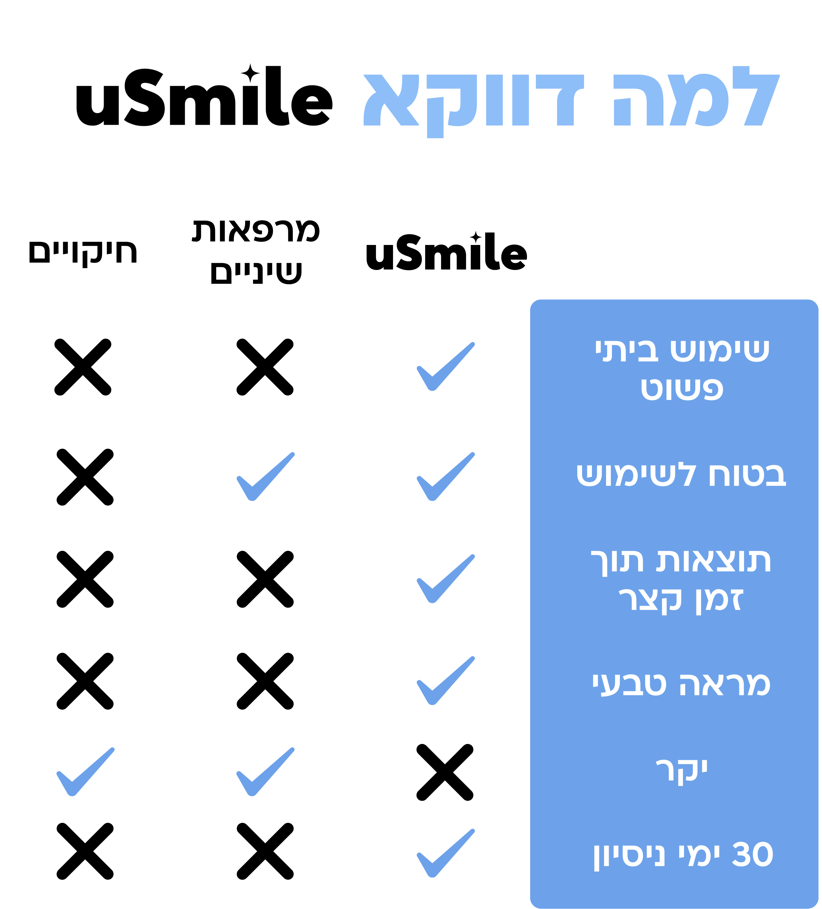 בדיוק בשביל זה פיתחנו את uSmile ✨ ערכת ההלבנה הביתית שמשנה את כללי המשחק!