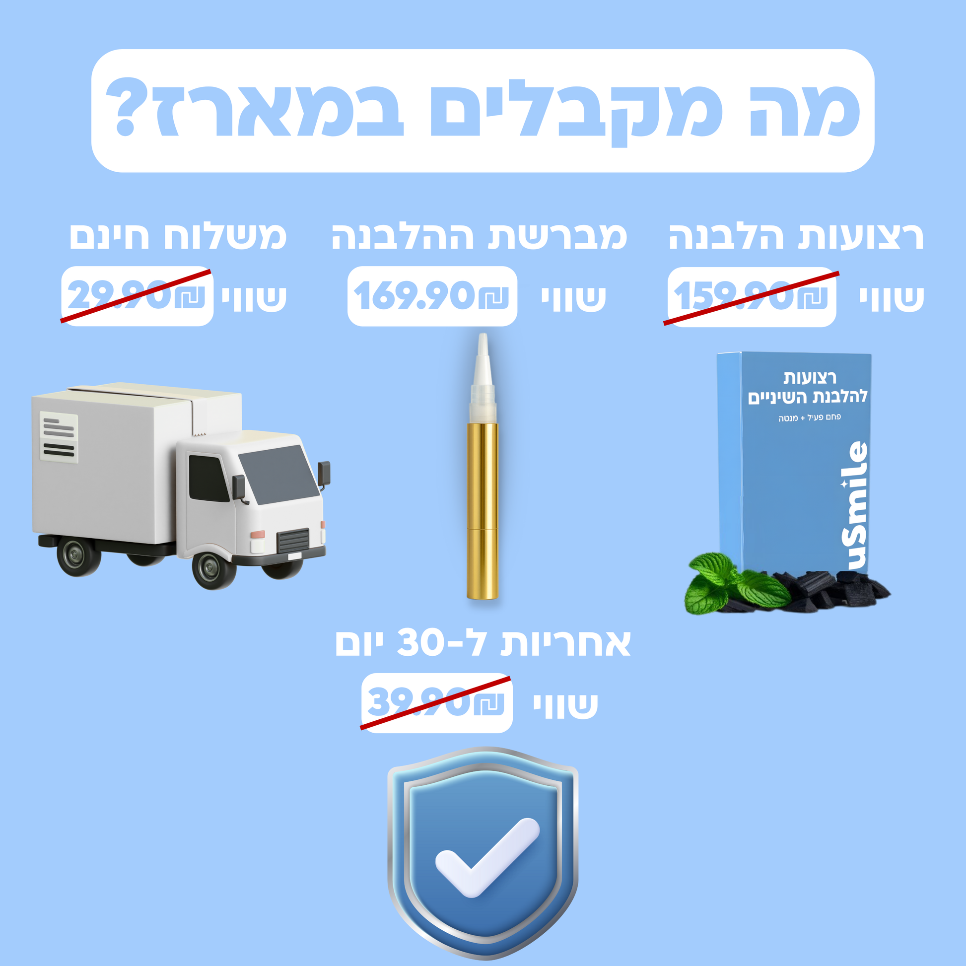 המארז של uSmile נותן לך את כל מה שתצטרך בשביל החיוך המושלם!